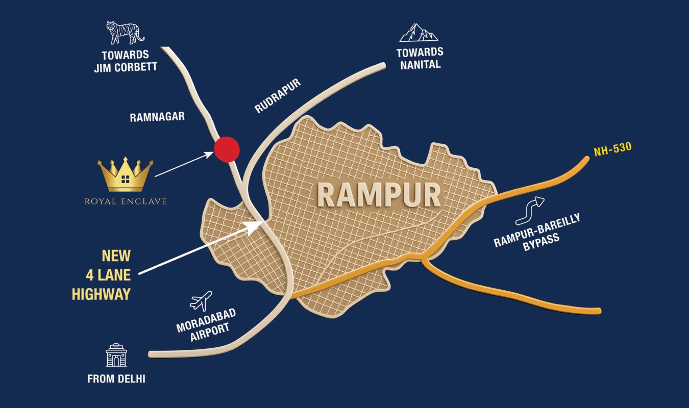 Strategically located on the upcoming Rampur–Jim Corbett 4-lane highway, Royal Enclave offers seamless connectivity while staying close to nature. Enjoy fast access to city essentials, highways, and hill destinations.
